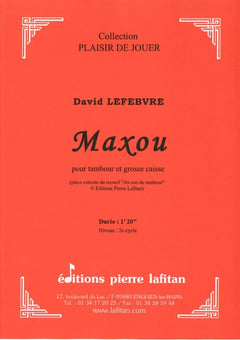 Le fichier PDF de l'oeuvre "Maxou", pour tambour avec accompagnement de grosse caisse, comprend : 1 page de garde et la partition de tambour-grosse caisse (2 pages). Soit 3 pages au total. Le poids du fichier PDF est : 86,1 Ko.