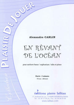 Le fichier PDF de l'oeuvre "En rêvant de l’océan", pour saxhorn / euphonium / tuba et piano, comprend : 1 page de garde, le conducteur saxhorn basse-piano (2 pages), la partie de saxhorn basse ou euphonium sib clé de fa seul (1 page), la partie de saxhorn basse ou euphonium sib clé de sol seul (1 page), la partie de tuba ut seul (1 page), la liste des œuvres pour saxhorn basse d’Alexandre Carlin publiées aux Editions Pierre Lafitan (1 page). Soit 7 pages au total. Le poids du fichier PDF est : 150 Ko.