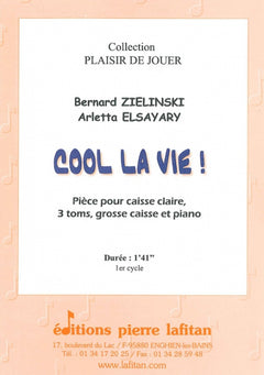 Le fichier PDF de l'oeuvre "Cool la vie !" comprend : 1 page de garde, la présentation de la pièce par les compositeurs (1 page), la nomenclature (1 page), le conducteur percussion-piano (4 pages), la partie de percussion seule (2 pages), les biographies et photos des compositeurs (1 page) et la liste des œuvres de Bernard Zielinski et Arletta Elsayary, publiées aux Editions Pierre Lafitan (1 page). Total : 11 pages. Le poids du fichier PDF est : 407 Ko.