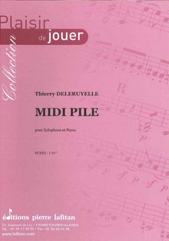 Le fichier PDF de l'oeuvre "Midi pile", pour xylophone et piano, comprend : 1 page de garde, le conducteur xylophone-piano (4 pages) et la partie de xylophone seul (1 page). Soit 6 pages au total. Le poids du fichier PDF est : 78,10 Ko.