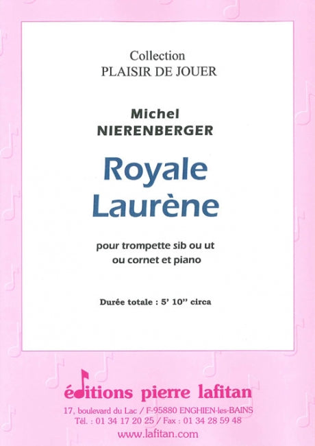 Le fichier PDF de l'oeuvre « Royale Laurène » comprend : 1 page de garde, le conducteur trompette-piano (7 pages), la partie de trompette sib seule (3 pages), la partie de trompette ut seule (3 pages) et 1 page comprenant la biographie du compositeur. Soit 15 pages au total. Le poids du fichier PDF est : 286 Ko.