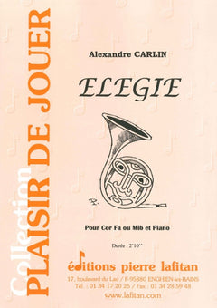 Le fichier PDF de l'oeuvre "Elégie", pour cor d'harmonie et piano, comprend : 1 page de garde, le conducteur cor-piano (2 pages), la partie de cor fa seul (1 page), la partie de cor mib seul (1 page) et la liste des œuvres d’Alexandre Carlin pour cor d’harmonie, publiées aux Editions Pierre Lafitan (1 page). Soit 6 pages au total. Le poids du fichier PDF est : 126 Ko.