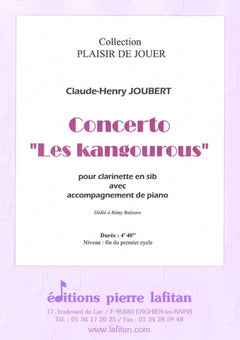 Le fichier PDF de l'oeuvre "Concerto "Les kangourous", pour clarinette en sib avec accompagnement de piano, comprend : 1 page de garde, le conducteur clarinette-piano (8 pages), la partie de clarinette en sib seule (3 pages) et la liste des œuvres pour clarinette de Claude-Henry Joubert publiées aux Editions Pierre Lafitan (1 page). Soit 13 pages au total. Le poids du fichier PDF est : 221 Ko.
