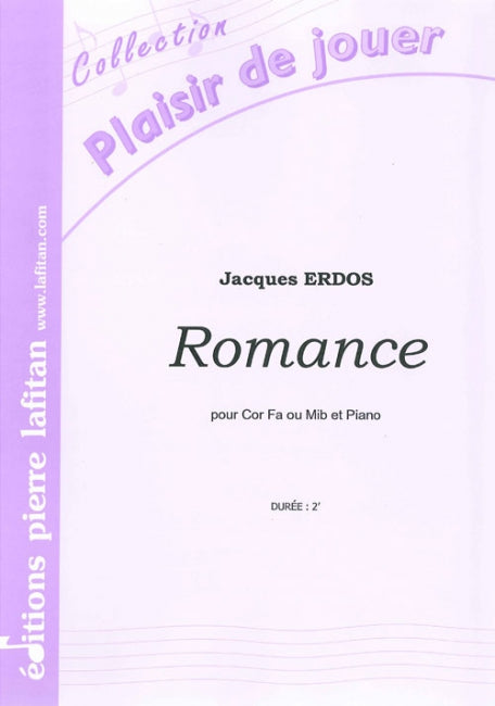 Le fichier PDF de l'oeuvre "Romance", pour cor fa ou mib et piano, comprend : 1 page de garde, le conducteur cor-piano (3 pages), la partie de cor fa seul (1 page) et la partie de cor mib seul (1 page). Soit 6 pages au total. Le poids du fichier PDF est : 110 Ko.