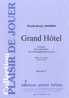 Le fichier PDF de l'oeuvre "Grand Hôtel", pour contrebasse avec accompagnement de piano, comprend : 1 page de garde, la présentation de la pièce (1 page), le conducteur contrebasse-piano (10 pages) et la partie de contrebasse seule (3 pages). Soit 15 pages au total. Le poids du fichier PDF est : 537 Ko.