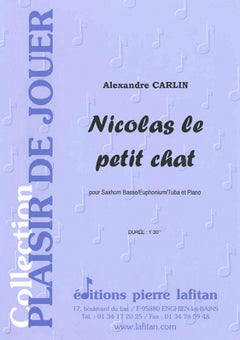 Le fichier PDF de l'oeuvre "Nicolas le petit chat", pour saxhorn basse / euphonium / tuba et piano, comprend : 1 page de garde, le conducteur saxhorn basse-piano (2 pages), la partie de saxhorn basse ou euphonium sib clé de fa seul (1 page), la partie de saxhorn basse ou euphonium sib clé de sol seul (1 page), la partie de tuba ut seul (1 page) et la liste des œuvres d’Alexandre Carlin pour saxhorn basse/tuba, publiées aux Editions Pierre Lafitan (1 page). Soit 7 pages au total. Le poids du fichier PDF est : 170 Ko.