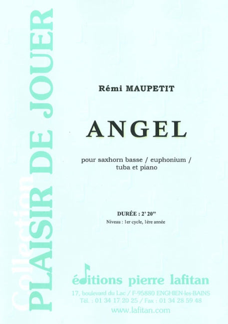 Le fichier PDF de l'oeuvre "Angel", pour saxhorn basse / euphonium / tuba et piano, comprend : 1 page de garde, le conducteur saxhorn basse-piano (5 pages), la partie de saxhorn basse ou euphonium sib clé de fa seul (1 page), la partie de saxhorn basse ou euphonium sib clé de sol seul (1 page) et la partie de tuba ut seul (1 page). Soit 9 pages au total. Le poids du fichier PDF est : 162 Ko.