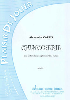 Le fichier PDF de l'oeuvre "Chinoiserie", pour saxhorn basse / euphonium / tuba et piano, comprend : 1 page de garde, le conducteur saxhorn basse-piano (3 pages), la partie de saxhorn basse ou euphonium sib clé de fa seul (1 page), la partie de saxhorn basse ou euphonium sib clé de sol seul (1 page), la partie de tuba ut seul (1 page) et la liste des œuvres d’Alexandre Carlin pour saxhorn basse/tuba, publiées aux Editions Pierre Lafitan (1 page). Soit 8 pages au total. Le poids du fichier PDF est : 176 Ko.