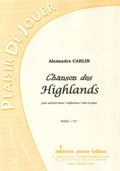 Le fichier PDF de l'oeuvre "Chanson des Highlands", pour saxhorn basse / euphonium / tuba et piano, comprend : 1 page de garde, le conducteur saxhorn basse-piano (3 pages), la partie de saxhorn basse ou euphonium sib clé de fa seul (2 pages), la partie de saxhorn basse ou euphonium sib clé de sol seul (2 pages), la partie de tuba ut seul (2 pages) et la liste des œuvres d’Alexandre Carlin pour saxhorn basse / tuba, publiées aux Editions Pierre Lafitan (1 page). Soit 11 pages au total. Le poids du fichier PDF est : 206 Ko.