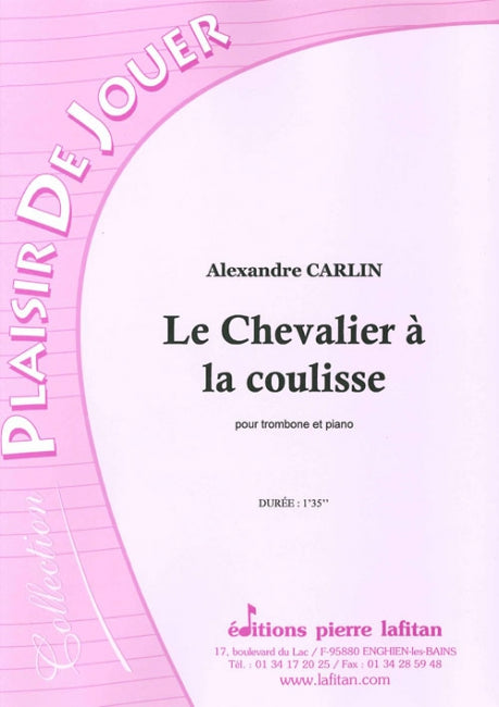 Le fichier PDF de l'oeuvre "Le Chevalier à la coulisse", pour trombone et piano, comprend : 1 page de garde, le conducteur trombone-piano (2 pages), la partie de trombone ut seul (1 page), la biographie d’Alexandre Carlin et la liste de ses œuvres pour trombone et piano, publiées aux Editions Pierre Lafitan (1 page). Soit 5 pages au total. Le poids du fichier PDF est : 162 Ko.