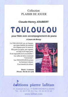 Le fichier PDF de l'oeuvre "Touloulou", pour flûte traversière avec accompagnement de piano, comprend : 1 page de garde, avec une photo de la Touloulou et un mot d’explication, le conducteur flûte-piano (8 pages), la partie de flûte traversière seule (4 pages) et la biographie de Claude-Henry Joubert avec sa photo (1 page). Soit 14 pages au total. Le poids du fichier PDF est : 371 Ko.