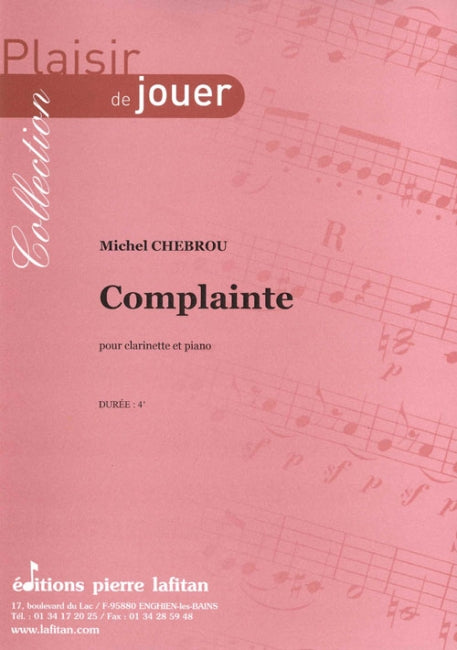 Le fichier PDF de l'oeuvre "Complainte", pour clarinette et piano, comprend : 1 page de garde, le conducteur clarinette-piano (4 pages) et la partie de clarinette seule (2 pages). Soit 7 pages au total. Le poids du fichier PDF est : 99,6 Ko.