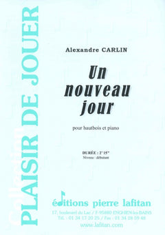 Le fichier PDF de l'oeuvre "Un nouveau jour", pour hautbois et piano, comprend : 1 page de garde, le conducteur hautbois-piano (3 pages), la partie de hautbois seul (1 page) et la liste des œuvres pour hautbois et piano d’Alexandre Carlin, publiées aux Editions Pierre Lafitan (1 page). Soit 6 pages au total. Le poids du fichier PDF est : 183 Ko.