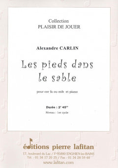 Le fichier PDF de l'oeuvre "Les pieds dans le sable", pour cor fa ou mib et piano, comprend : 1 page de garde, le conducteur cor-piano (3 pages), la partie de cor fa seul (2 pages), la partie de cor mib seul (2 pages) et la liste des œuvres pour cor et piano d’Alexandre Carlin, publiées aux Editions Pierre Lafitan (1 page). Soit 9 pages au total. Le poids du fichier PDF est : 238 Ko.