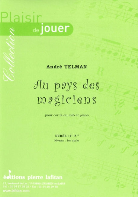 Le fichier PDF de l'oeuvre "Au pays des magiciens", pour cor fa ou mib et piano, comprend : 1 page de garde, le conducteur cor-piano (3 pages), la partie de cor fa seul (1 page) et la partie de cor mib seul (1 page). Soit 6 pages au total. Le poids du fichier PDF est : 127 Ko.