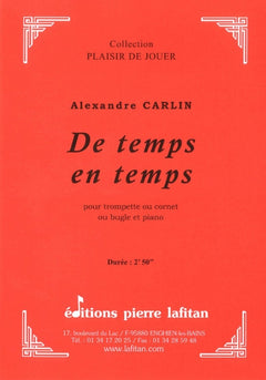 Le fichier PDF de l'oeuvre "De temps en temps", pour trompette ou cornet ou bugle et piano, comprend : 1 page de garde, le conducteur trompette-piano (4 pages), la partie de trompette sib/cornet/bugle seuls (2 pages) et la partie de trompette ut seule (2 pages). Soit 9 pages au total. Le poids du fichier PDF est : 135 Ko.