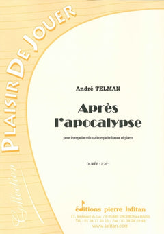 Le fichier PDF de l'oeuvre "Après l’apocalypse", pour trompette mib ou trompette basse et piano, comprend : 1 page de garde, le conducteur trompette mib-piano (3 pages), la partie de trompette mib ou trompette basse seule (1 page) et la liste des œuvres d’André Telman pour trompette mib et piano, publiées aux Editions Pierre Lafitan (1 page). Soit 6 pages au total. Le poids du fichier PDF est : 114 Ko.