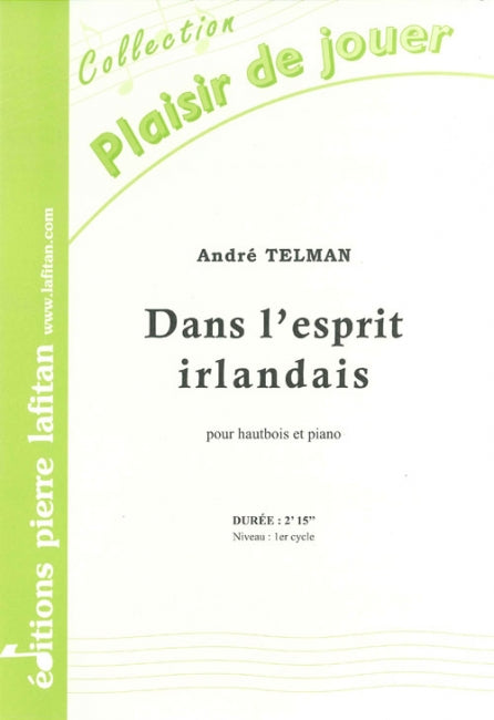 Le fichier PDF de l'oeuvre "Dans l’esprit irlandais", pour hautbois et piano, comprend : 1 page de garde, le conducteur hautbois-piano (3 pages) et la partie de hautbois seul (1 page). Soit 5 pages au total. Le poids du fichier PDF est : 120 Ko.