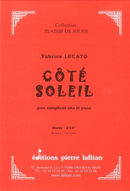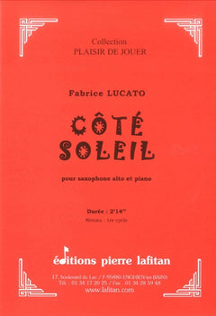 Le fichier PDF de l'oeuvre "Côté soleil", pour saxophone alto et piano comprend : 1 page de garde, le conducteur saxophone alto-piano (4 pages) et la partie de saxophone alto mib seul (2 pages). Soit 7 pages au total. Le poids du fichier PDF est : 129 Ko.