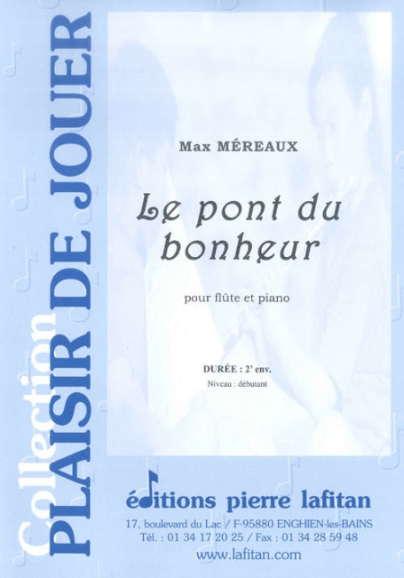 Le fichier PDF de l'oeuvre "Le pont du bonheur", pour flûte et piano, comprend : 1 page de garde, le conducteur flûte-piano (3 pages) et la partie de flûte seule (1 page). Soit 5 pages au total. Le poids du fichier PDF est : 101 Ko.