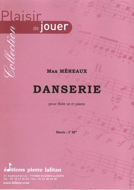 Le fichier PDF de l'oeuvre "Danserie", pour flûte ut et piano, comprend : 1 page de garde, le conducteur flûte-piano (4 pages) et la partie de flûte ut seule (2 pages). Soit 7 pages au total. Le poids du fichier PDF est : 108 Ko.