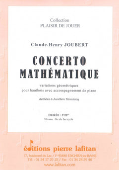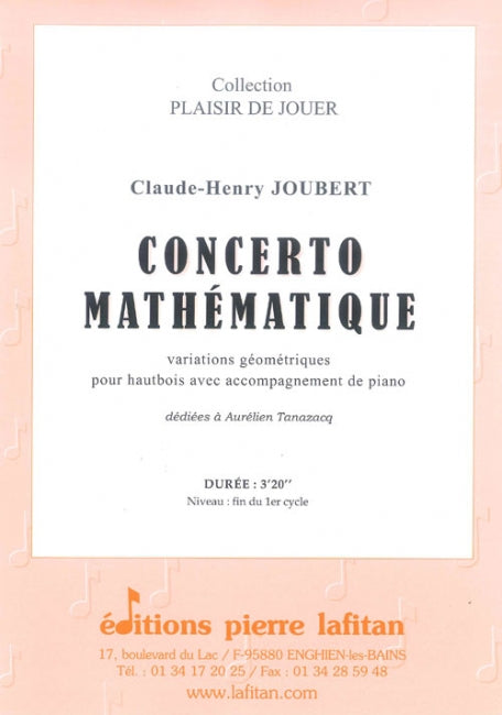 Le fichier PDF de l'oeuvre "Concerto mathématique", pour hautbois avec accompagnement de piano, comprend : 1 page de garde, le conducteur hautbois-piano (8 pages), la partie de hautbois seul (3 pages) et la liste des oeuvres pour hautbois de Claude-Henry Joubert, publiées aux Editions Pierre Lafitan (1 page). Soit 13 pages au total. Le poids du fichier PDF est : 246 Ko.