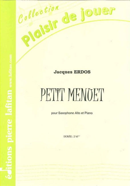 Le fichier PDF de l'oeuvre "Petit menuet", pour saxophone alto et piano, comprend : 1 page de garde, le conducteur saxophone alto-piano (3 pages) et la partie de saxophone alto mib seul (1 page). Soit 5 pages au total. Le poids du fichier PDF est : 156 Ko.