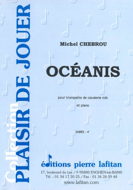 Le fichier PDF de l'oeuvre "Océanis", pour trompette mib et piano, comprend : 1 page de garde, la biographie du compositeur Michel Chebrou (1 page), la dédicace (1 page), le conducteur trompette mib-piano (5 pages) et la partie de trompette mib seule (3 pages), précédée d’une page de garde permettant de faciliter la tourne. Soit 12 pages au total. Le poids du fichier PDF est : 178 Ko.