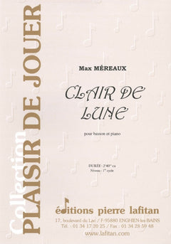 Le fichier PDF de l'oeuvre "Clair de lune", pour basson et piano, comprend : 1 page de garde, le conducteur basson-piano (3 pages) et la partie de basson (1 page). Soit 5 pages au total. Le poids du fichier PDF est : 102 Ko.