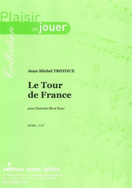 Le fichier PDF de l'oeuvre "Le Tour de France", pour clarinette et piano, comprend : 1 page de garde, le conducteur clarinette-piano (5 pages) et la partie de clarinette sib seule (2 pages). Soit 8 pages au total. Le poids du fichier PDF est : 117 Ko.