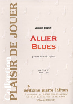 Le fichier PDF de l'oeuvre "Allier Blues", pour saxophone alto et piano, comprend : 1 page de garde, le conducteur saxophone alto-piano (6 pages) et la partie de saxophone alto mib seul (2 pages). Soit 9 pages au total. Le poids du fichier PDF est : 139 Ko.