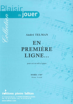 Le fichier PDF de l'oeuvre "En première ligne…", pour cor naturel mib et piano, comprend : 1 page de garde, le conducteur cor mib-piano (5 pages) et la partie de cor en mib seul (2 pages). Soit 8 pages au total. Le poids du fichier PDF est : 156 Ko.