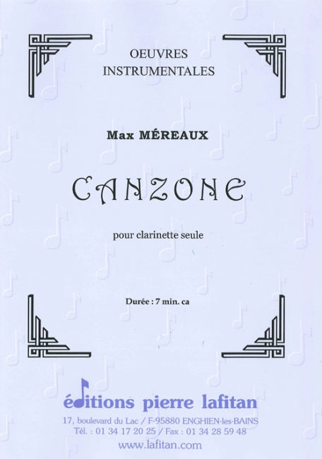 Le fichier PDF de l'oeuvre "Canzone", pour clarinette seule, comprend : 1 page de garde, la partie de clarinette seule (7 pages) et un duplicata des pages 2, 4 et 6, pour faciliter les tournes. Soit 11 pages au total. Le poids du fichier PDF est : 196 Ko.