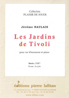 Le fichier PDF de l'oeuvre "Les Jardins de Tivoli", pour cor d’harmonie et piano, comprend : 1 page de garde, le conducteur cor-piano (6 pages), la partie de cor en fa seul (3 pages), la partie de cor mib seul (3 pages) et la biographie du compositeur Jérôme Naulais avec sa photo (1 page). Soit 14 pages au total. Le poids du fichier PDF est : 293 Ko.