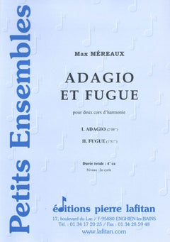 Le fichier PDF de l'oeuvre "Adagio et Fugue", pour deux cors d’harmonie, comprend : 1 page de garde et le conducteur (sur 4 pages), réunissant les deux voix de cors en fa. Le conducteur est dupliqué en 2 exemplaires (1 pour chaque instrumentiste). La page 4 est dupliquée, afin de faciliter la tourne. Soit 11 pages au total. Le poids du fichier PDF est : 184 Ko.