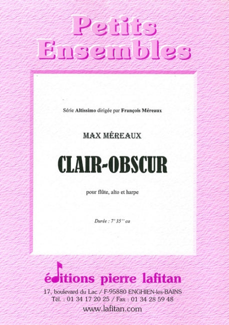 "Clair-obscur", pièce pour flûte, alto et harpe de Max Méreaux, a été créée à Antibes-Juan-les-Pins (Villa Eilenroc), les 21 et 22 mars 2010, par Véronique Charpentron (flûte), Magali Pyka de Coster (harpe) et François Méreaux (alto).