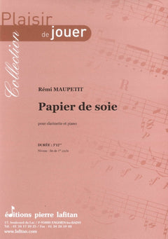 Le fichier PDF de l'oeuvre "Papier de soie", pour clarinette et piano, comprend : 1 page de garde, le conducteur clarinette-piano (5 pages) et la partie de clarinette en sib seule (2 pages). Soit 8 pages au total. Le poids du fichier PDF est : 163 Ko.