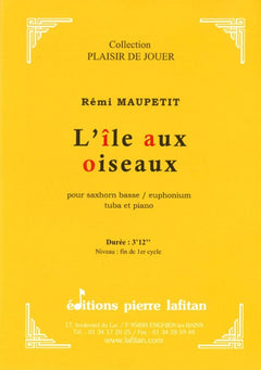Le fichier PDF de l'oeuvre "L’île aux oiseaux", pour saxhorn basse / euphonium / tuba et piano, comprend : 1 page de garde, le conducteur saxhorn basse-piano (5 pages), la partie de saxhorn basse ou euphonium sib clé de fa seul (2 pages), la partie de saxhorn basse ou euphonium sib clé de sol seul (2 pages), la partie d’euphonium ut seul (2 pages) et la partie de tuba basse ut seul (2 pages). Soit 14 pages au total. Le poids du fichier PDF est : 296 Ko.