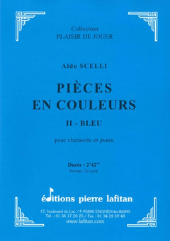 Le fichier PDF de l'oeuvre "Pièces en couleurs - II Bleu", pour clarinette et piano, comprend : 1 page de garde, le conducteur clarinette-piano (5 pages) et la partie de clarinette en sib seule (2 pages). Soit 8 pages au total. Le poids du fichier PDF est : 140 Ko.