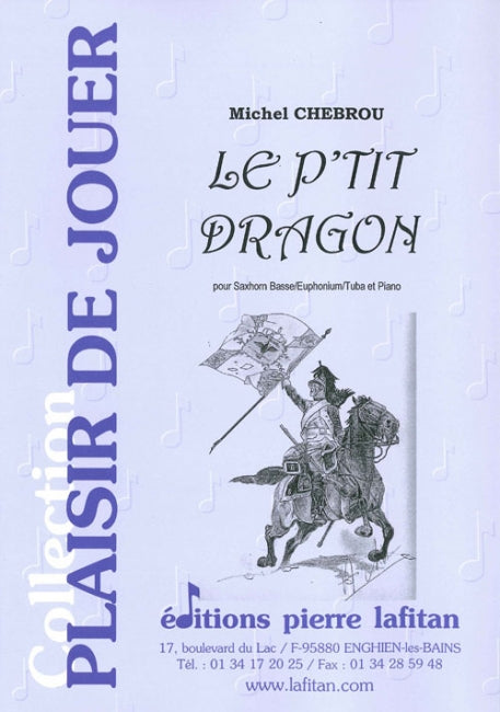 Le fichier PDF de l'oeuvre "Le p’tit dragon", pour saxhorn basse / euphonium / tuba et piano, comprend : 1 page de garde, le conducteur saxhorn basse-piano (3 pages), la partie de saxhorn basse sib clé de fa seul (1 page), la partie de saxhorn basse sib clé de sol seul (1 page) et la partie de tuba ut seul (1 page). Soit 7 pages au total. Le poids du fichier PDF est : 177 Ko.