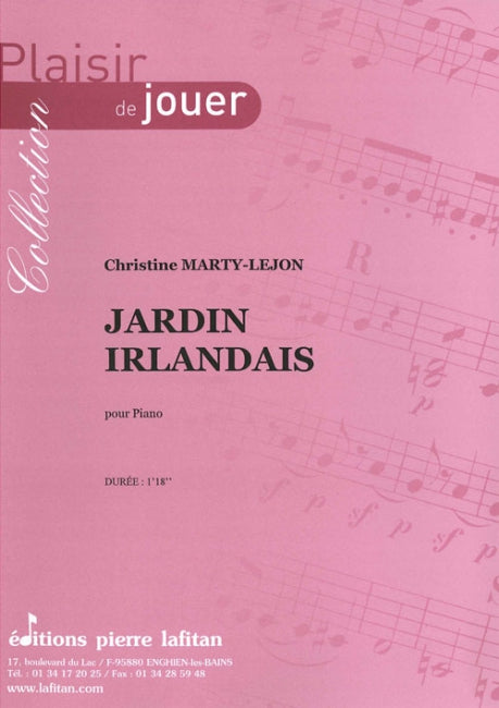 Le fichier PDF de l'oeuvre "Jardin irlandais", pour piano solo, comprend : 1 page de garde et la partition de piano (2 pages). Soit 3 pages au total. Le poids du fichier PDF est : 49,5 Ko.