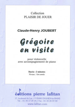 Le fichier PDF de l'oeuvre "Grégoire en visite", pour violoncelle avec accompagnement de piano comprend : 1 page de garde, le conducteur violoncelle-piano (5 pages), la partie de violoncelle seul (2 pages) et la biographie du compositeur avec sa photo (1 page). Soit 9 pages au total. Le poids du fichier PDF est : 253 Ko.