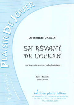 Le fichier PDF de l'oeuvre "En rêvant de l’océan", pour trompette ou cornet ou bugle et piano, comprend : 1 page de garde, le conducteur trompette-piano (2 pages), la partie de trompette sib ou cornet ou bugle seule (1 page), la partie de trompette ut seule (1 page) et la liste des œuvres pour trompette d’Alexandre Carlin publiées aux Editions Pierre Lafitan (1 page). Soit 6 pages au total. Le poids du fichier PDF est : 139 Ko.