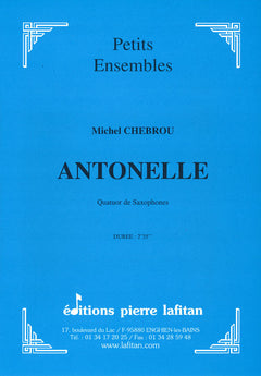 Michel Chebrou, compositeur emblématique de notre Edition et le groupe Saxo Voce, qui réunit, sous la houlette de Thibaut Canaval, des saxophonistes de haut niveau autour de différents projets artistiques et pédagogiques, Michel Chebrou et Saxo Voce, donc, ont conjugué leurs talents le temps d'un enregistrement. Parmi les œuvres de Michel Chebrou jouées et enregistrées par Saxo Voce, figure "Antonelle" : un quatuor de saxophones regroupant un soprano, deux altos et un ténor.