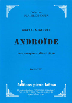 Le fichier PDF de l'oeuvre "Androïde", pour saxophone alto et piano, comprend : 1 page de garde, le conducteur saxophone alto-piano (7 pages) et la partie de saxophone alto seul (3 pages). Soit 11 pages au total. Le poids du fichier PDF est : 167 Ko.
