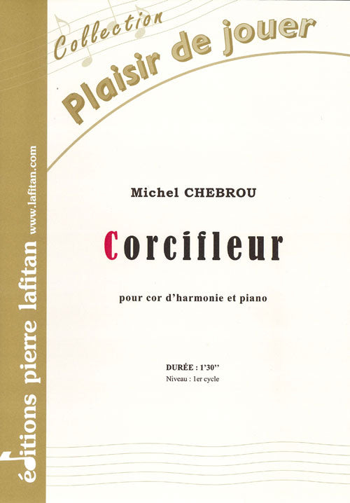 Le fichier PDF de l'oeuvre "Corcifleur", de Michel Chebrou, pour cor d’harmonie et piano, comprend : 1 page de garde, le conducteur cor-piano (4 pages), la partie de cor en fa seul (1 page) et la partie de cor mib seul (1 page). Soit 7 pages au total. Le poids du fichier PDF est : 146 Ko.
